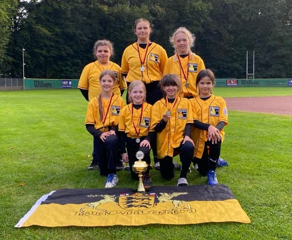 Bereits am Freitag reisten die Mädels der U13 nach Köln um dort beim erstmalig stattfinden Deutschlandcup im Softball teilzunehmen. Mit Belinda, Doro, Elena, Lea, Lisa, Sarah und Sophie-Lilou hatten es gleich 7 Mädchen in den BaWü U13 Kader geschafft und für die meisten Kinder und auch ihren Eltern war es das erste Mal bei so einem Event dabei sein zu dürfen. So war die Freude am Samstag natürlich groß, das mit zwei gewonnen und einem verlorenen Match die jungen Damen am Sonntag im Halbfinale antreten durften. Und hier schafften sie dann in einem spannenden Match auch den Einzug in das Finale. Aufgeregt stand der Nachwuchs dann den Freising Grizzlies entgegen, die in Deutschland in Sachen Softball eine ganz klare Hausnummer sind. Aber die Mädchen legten gut vor, mussten sich dann aber doch letztendlich knapp geschlagen geben, können aber unheimlich stolz auf Ihren 2. Platz.